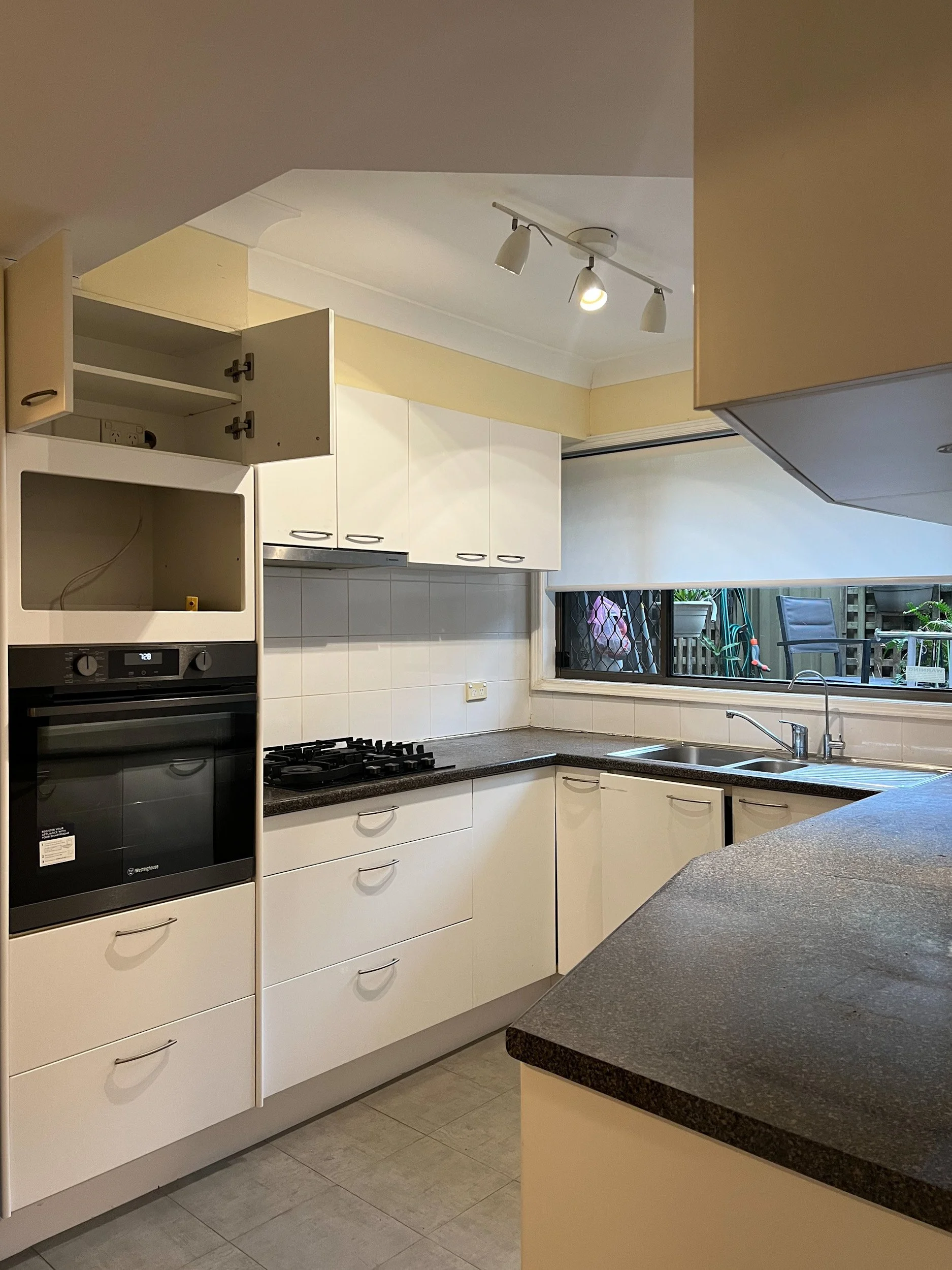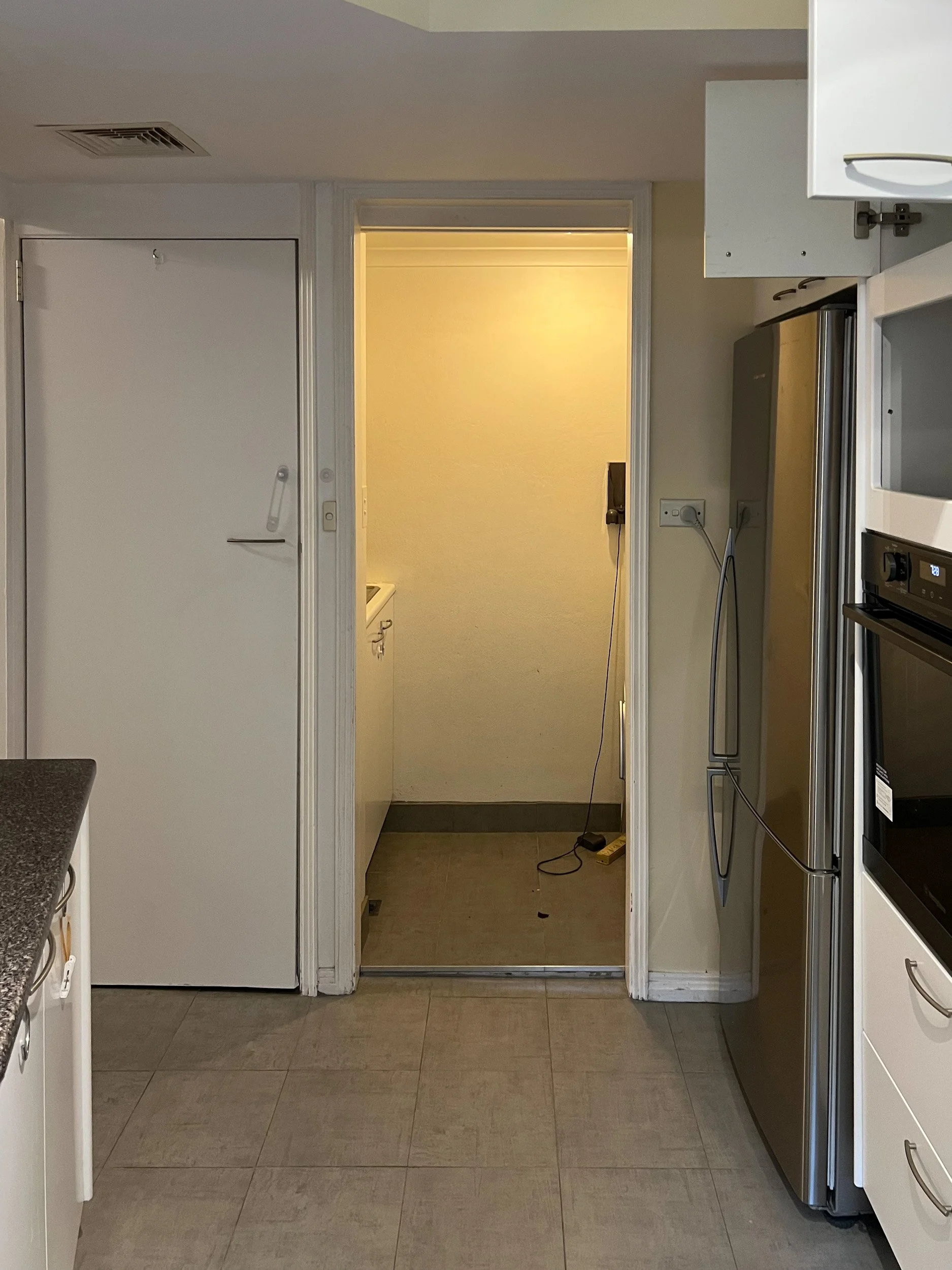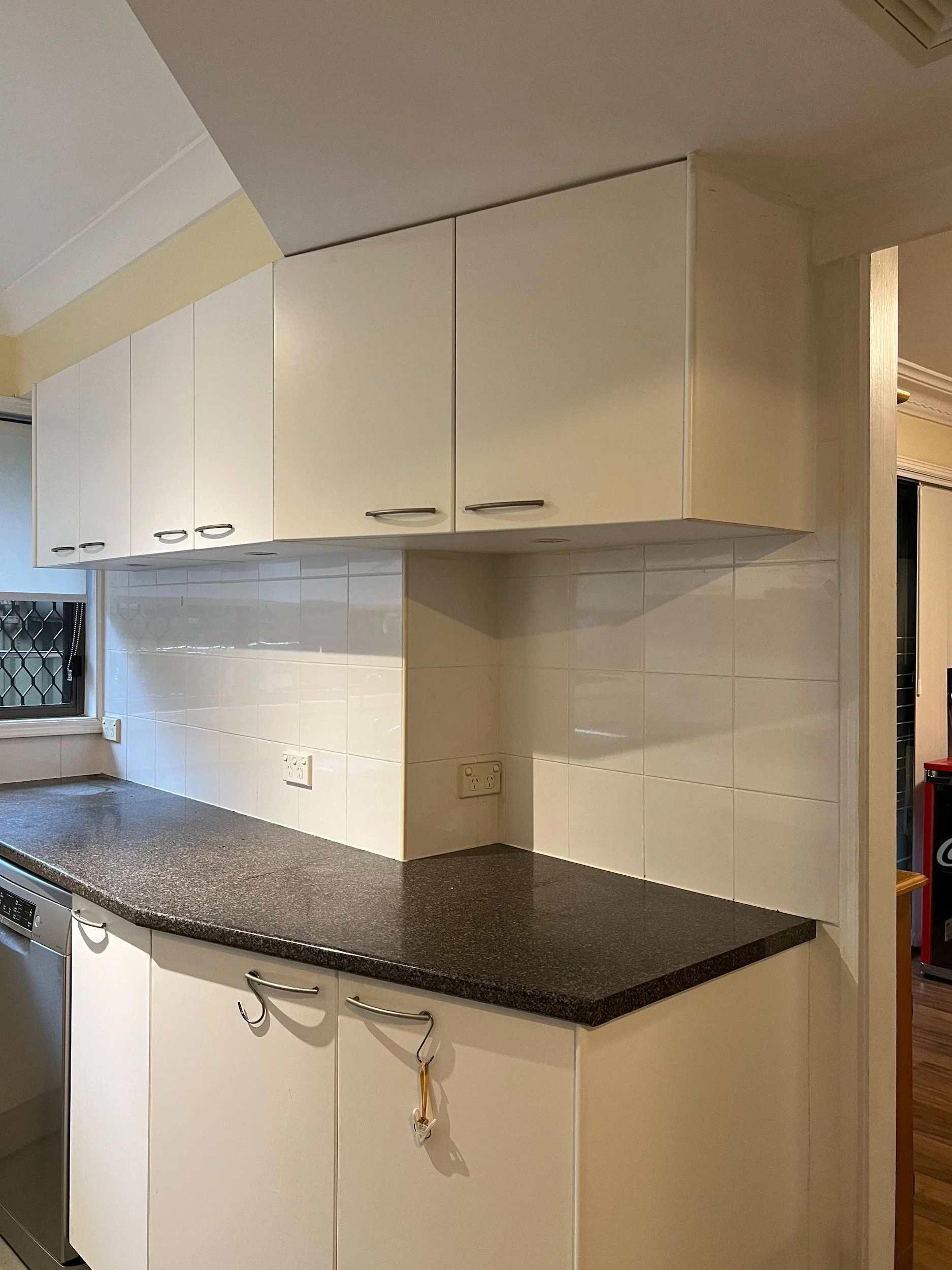We meticulously crafted a layout to amplify cabinet storage and ease of use, integrating a practical laundry area that melds seamlessly with the kitchen's new elegance.